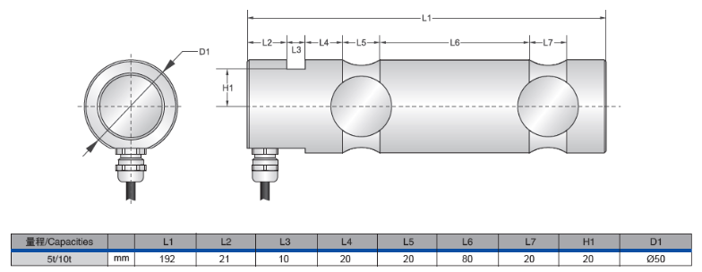 美國傳力DBST-1.5t稱重傳感器產品技術參數: