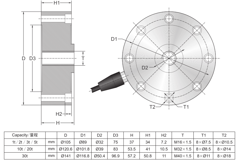 美國傳力DBSL-TJ-1t稱重傳感器產品技術參數: