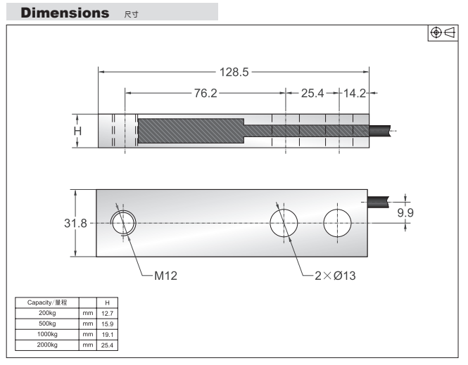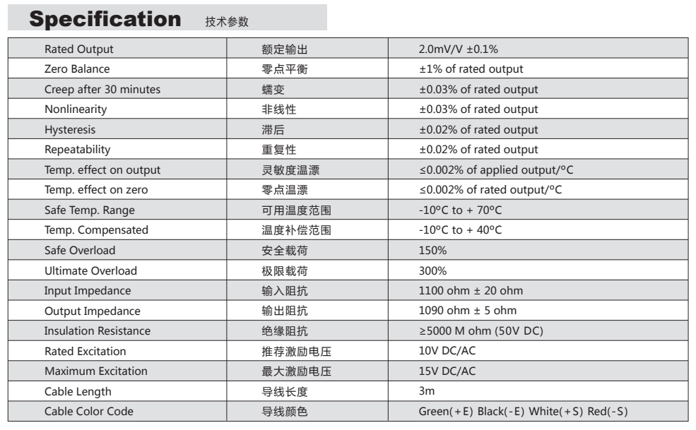 C7g廣州南創電子科技有限公司美國傳力Transcell稱重傳感器SBST-200kg技術參數圖:C7g廣州南創電子科技有限公司