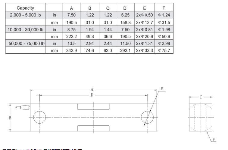 美國傳力Transcell稱重傳感器DBS-1klb技術(shù)參數(shù)圖: