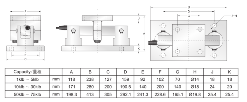 Z1F廣州南創電子科技有限公司美國傳力Transcell稱重模塊DBS-1K MODULE技術參數圖: