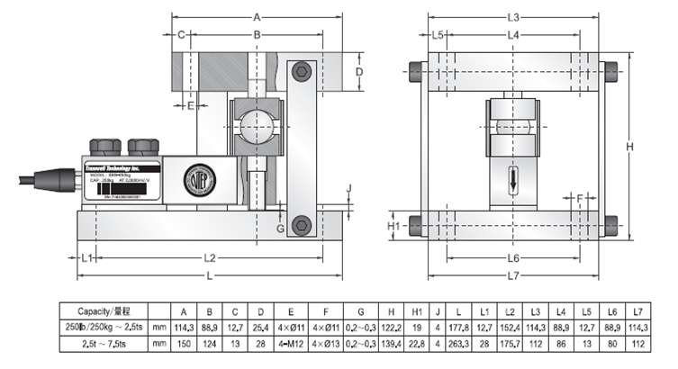 美國傳力Transcell稱重模塊SBSB-250LB MODULE技術參數圖: