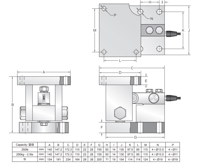 量程范圍:250lb,250kg,500kg,1t,1.5t,2tT52廣州南創(chuàng)電子科技有限公司