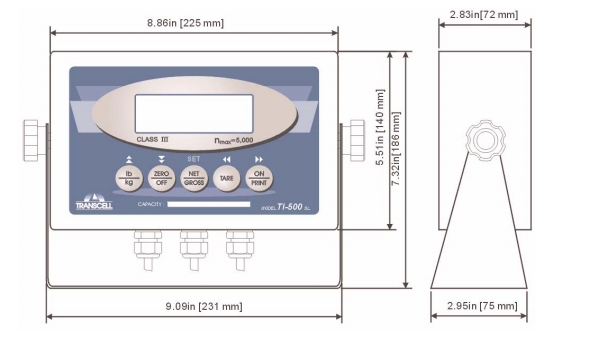 美國傳力TranscelTI-500SL稱重顯示儀表尺寸圖:jPP廣州南創電子科技有限公司