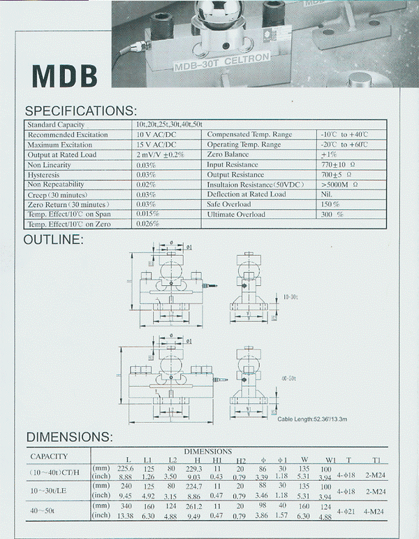 美國世銓celtron MDB-25T稱重傳感器技術參數圖: