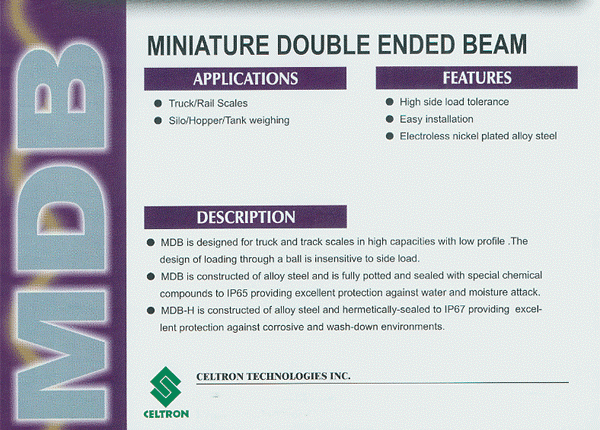 Celtron MDB雙剪切梁式稱重傳感器專為卡車和鐵路的低配置高容量規模設計。在裝載過程中不易受負載影響。