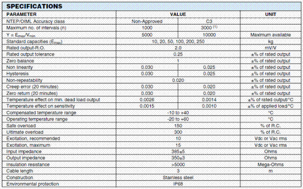 美國Celtron稱重傳感器HBB-50KG技術參數:zNi廣州南創電子科技有限公司