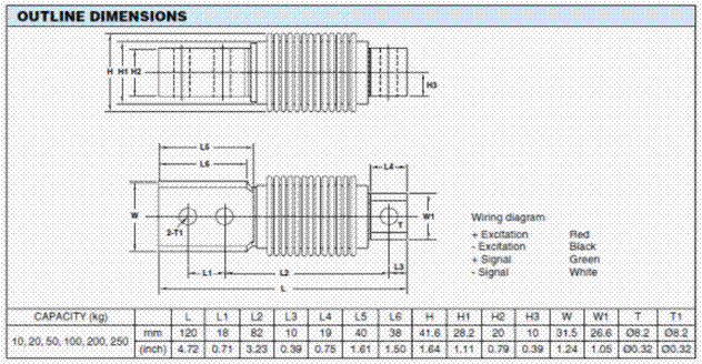 美國Celtron稱重傳感器HBB-50KG產品尺寸圖:zNi廣州南創電子科技有限公司