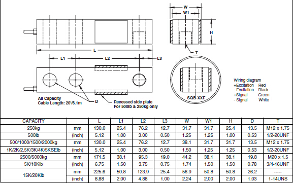 美國(guó)世銓Celtron SQB系列稱重傳感器所有量程如下: K3E廣州南創(chuàng)電子科技有限公司