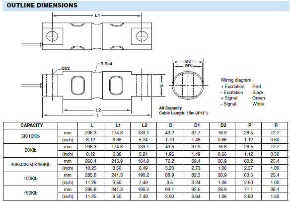 f9j廣州南創電子科技有限公司美國世銓Celtron csb系列稱重傳感器所有量程如下: f9j廣州南創電子科技有限公司csb-5klb稱重傳感器