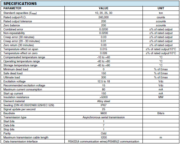 美國Celtron稱重傳感器MDBD-30T產品參數:BNH廣州南創電子科技有限公司