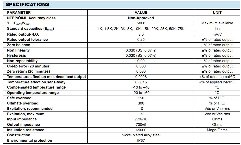 美國vishay Celtron稱重傳感器所有量程如下: oBj廣州南創電子科技有限公司