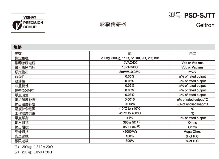 美國vishay celtron稱重傳感器PSD-500kgSJTT產(chǎn)品技術(shù)參數(shù):659廣州南創(chuàng)電子科技有限公司
