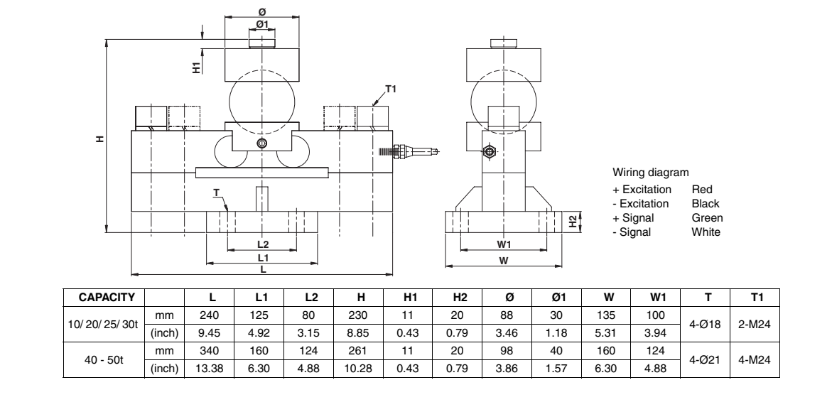 美國vishay celtron稱重傳感器MDB-50t產品尺寸圖:qgw廣州南創電子科技有限公司