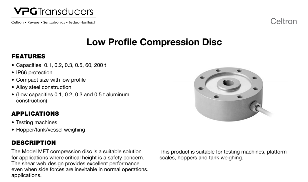 vishay celtron MFT-100kg稱重傳感器型號類別技術參數選型安裝等資料信息,如果有關