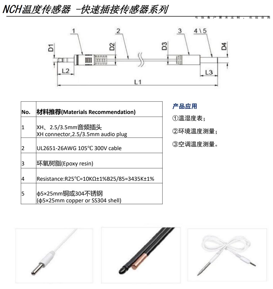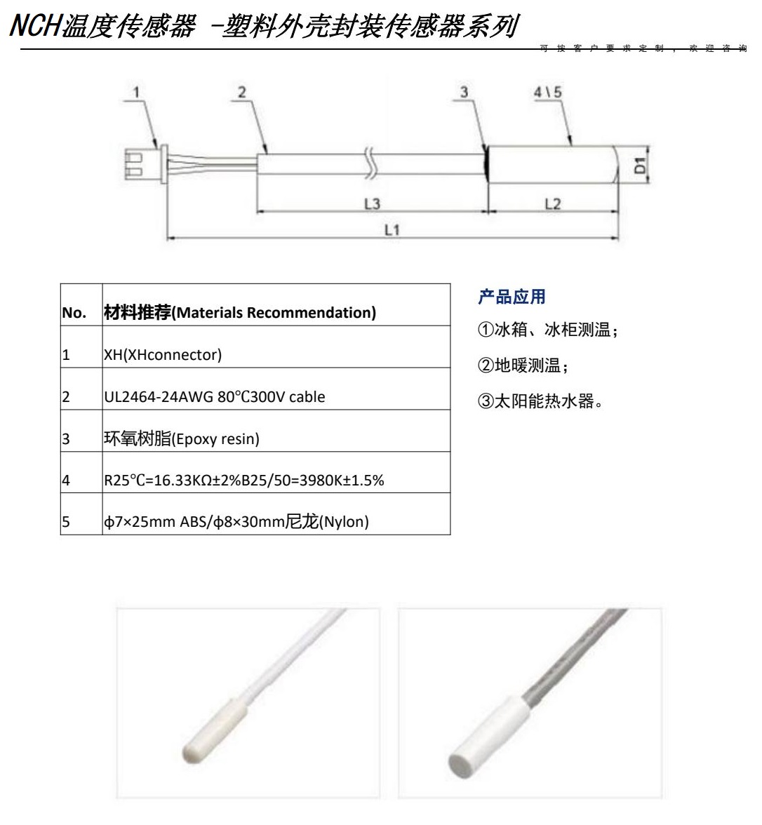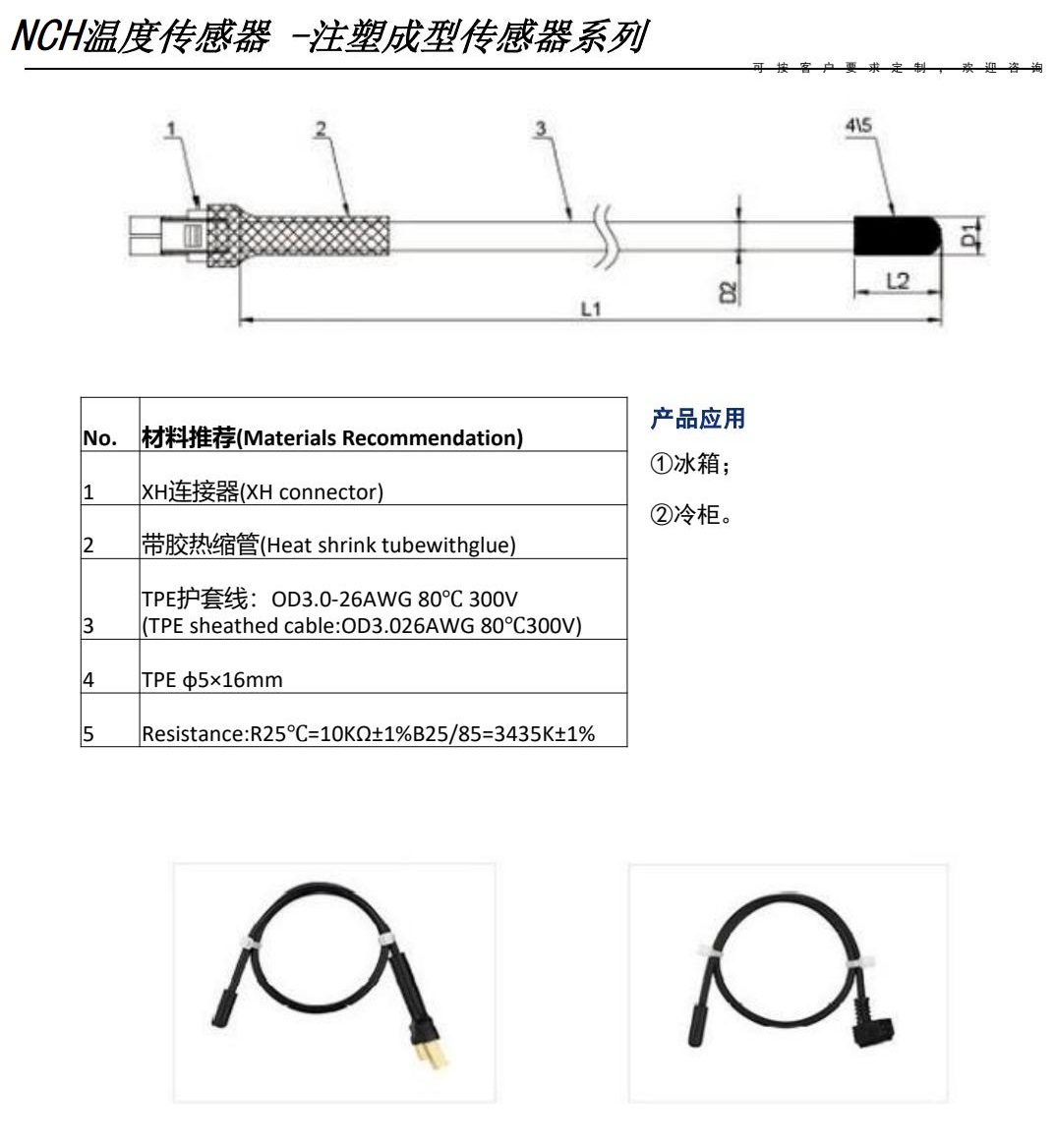 NCH溫度濕度傳感器用于冰箱、冰柜、冷藏室、冷凍室、蒸發器、壓縮機