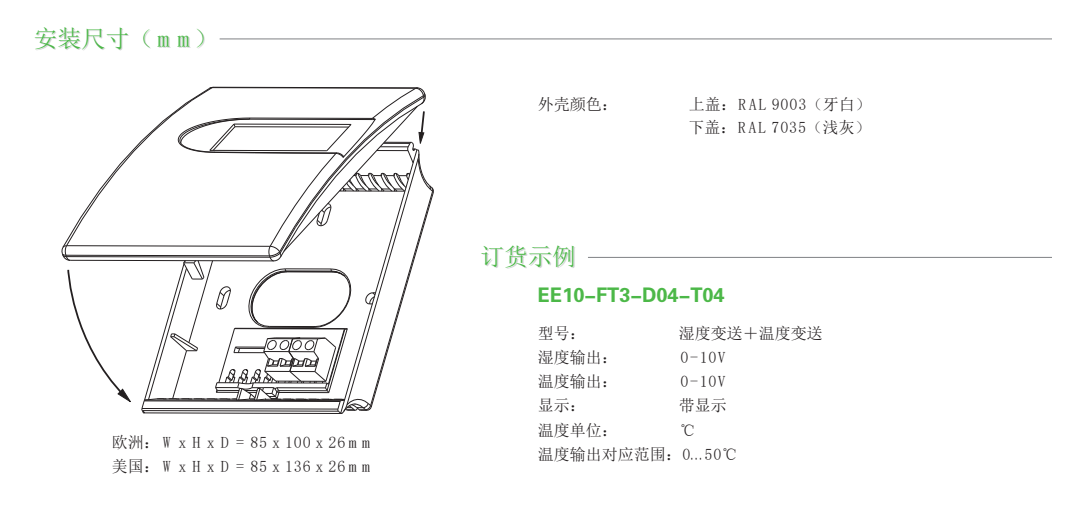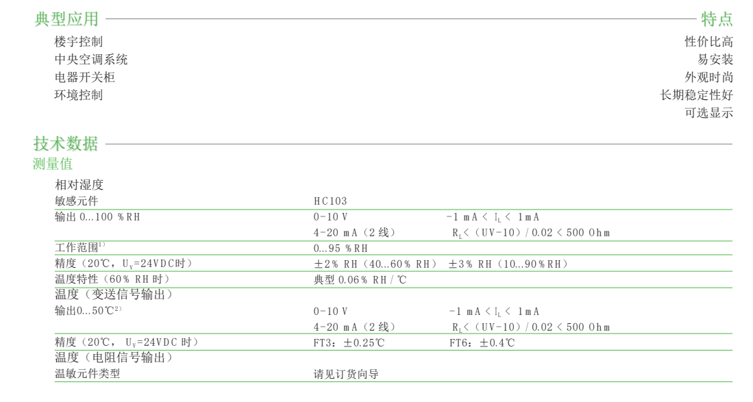 奧地利E+E全系列溫濕度傳感器, 暖通空調用室內溫濕度變送器 , 系列溫濕度變送器專為暖通空調領域溫濕度測量而設計,適用于商業樓宇和常規建筑的BA系統。變送器采用 E+E高品質的 HC103 濕敏元件,測量精度高。變送器外型設計美觀,安裝簡便。濕度輸出信號為標準4-20mA或0-10VDC信號,溫度輸出可選擇4-20mA或0-10VDC的標準信號或電阻輸出信號。系列有兩晶顯示模塊用以現場的溫濕度顯示。種外型設計以滿足不同地區標準,且所有產品都可以配置清晰的液25.7。
