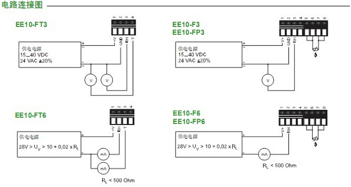 奧地利E+E EE10溫濕度變送器尺寸結構、電路連接參考圖: