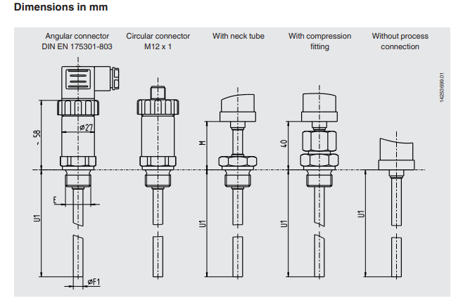 PON廣州南創電子科技有限公司威卡wikaTF40 TF41 TF43 TF44 TF45熱電阻溫度計尺寸圖:PON廣州南創電子科技有限公司