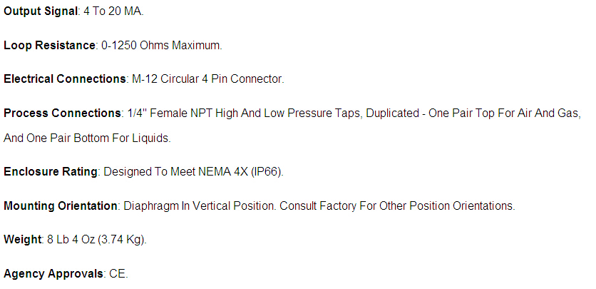美國DWYER 631B系列液用差壓變送器技術參數圖: