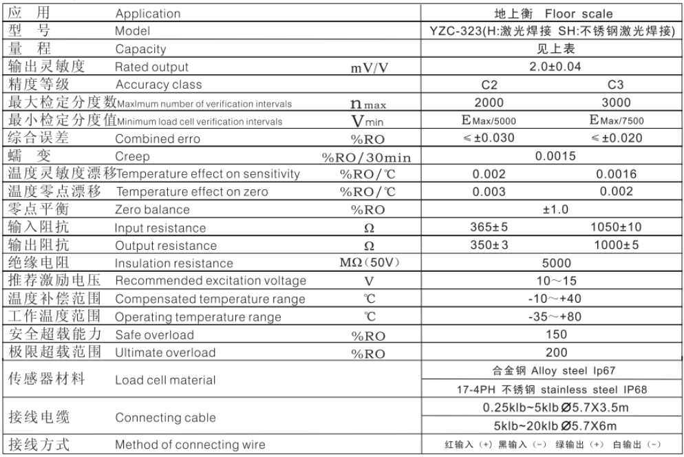 peQ廣州南創電子科技有限公司廣測GUANGCE YZC稱重傳感器技術參數圖: