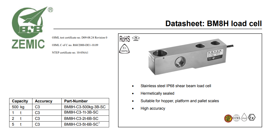 美國ZEMIC BM8H-C3-2.0T-3B稱重傳感器產品相關銷售商官網、